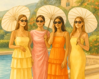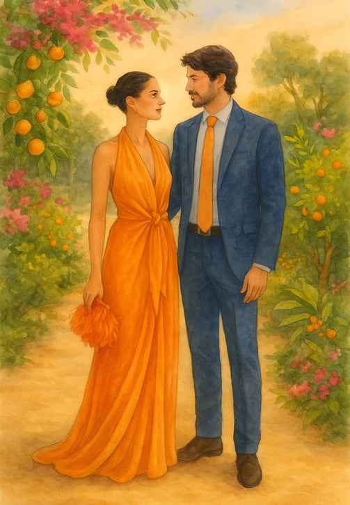 We invite you to dress in the glowing shades of a Portuguese sunset 🌅 – think citrusy yellows, bougainvillea pinks, terracotta oranges, and coral. Our wedding is a celebration of light, joy, and summer – and your outfits are part of the magic ✨